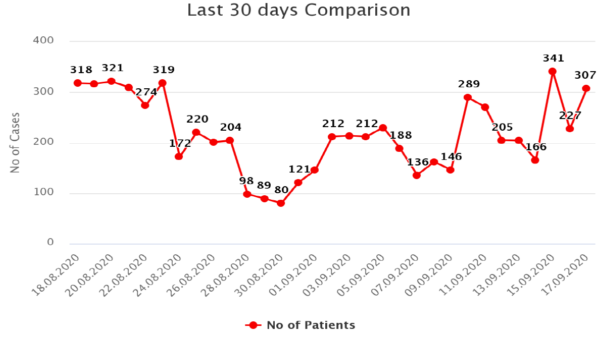 The province, which had been reporting over 300 new cases per day in the mid-August, even registering about 300 cases after a lapse of one month, keen observers noted and cautioned extra vigilance and preventive measures to avert any untoward, particularly when the market activities were in full swing and educational institutions and marriage halls had been allowed to resume their long-halted activities.