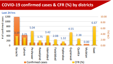 As many as 1,038 new people were tested positive for coronavirus at Karachi on July 6, followed by Hyderabad (191), Sukkur (107), Shaheed Benazirabad (48), Sanghar (42), Naushero Feroze (35), Tando Allahyar (34), Khairpur (30), Mirpurkhas (25), Larkana (22), Kambar Shahdadkot (21), Jamshoro (21), Sujawal (19), Matiari (16), Shikarpur (15), Tando Mohammad Khan (21), Ghotki (8), Thatta (6), Dadu (3), Kashmore (3) and Jacobabad (2)–PNFS