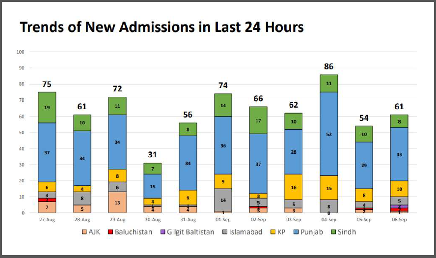 In the meantime, the district-wise breakdown of the registered new cases, as per Sindh health department’s daily situation report, came on September 7 as: Karachi (66), Naushero Feroze (10), Thatta (7), Badin (6), Umerkot (4), Ghotki (4), Khairpur (3), Shikarpur (3), Sujawal (3), Dadu (2), Jacobabad (2), Kambar Shahdad Kot (2), Matiari (2), Jamshoro (1), Sanghar (1), Shaheed Benazirabad (1) and Sukkur (1).