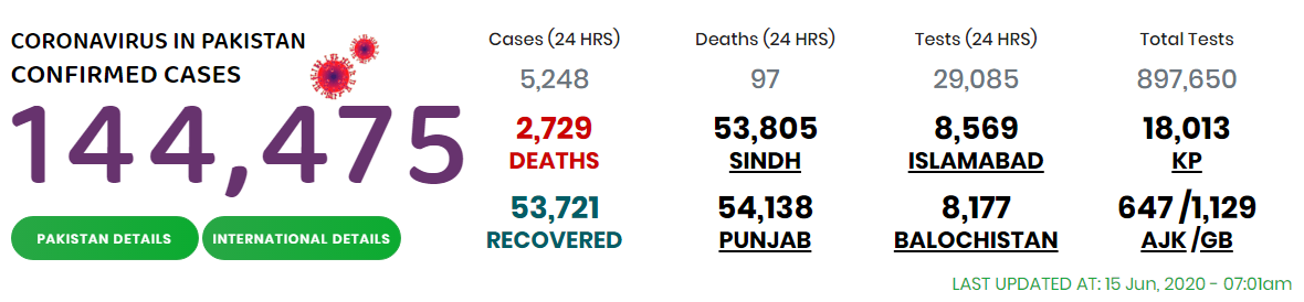 According to health department daily summary, as many as 22 COVID-19 patients lost their lives across the province during the last 24 hours ending at 9 am on June 15 taking the tally of fatalities to 853 for the province.
