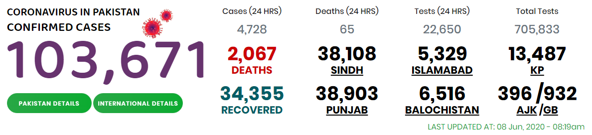 According to the official summary of the disease, as many as 1,477 peoples were tested positive for coronavirus during the last 24 hours, ending at 9 am on June 8, while the new deaths figured as 29.