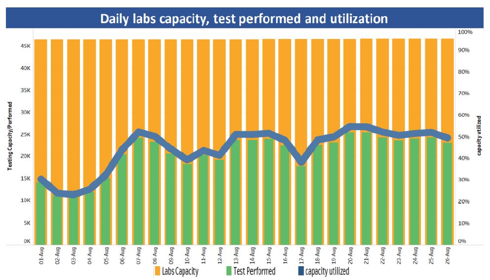 On August 26, the testing rate was around 43% of the maximum collective capacity of 14,950.
