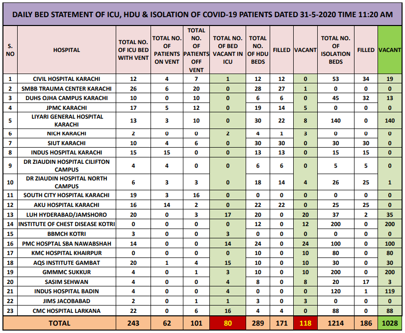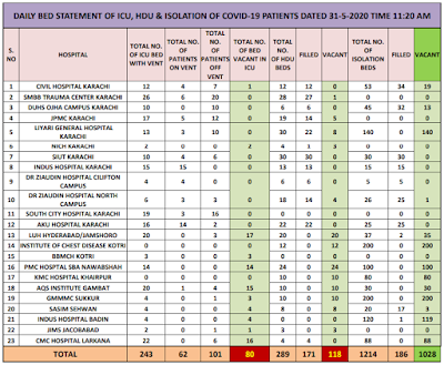 However, some other official sources revealed that almost all the patients, except one of Sukkur, lost their lives at six or so public and private hospitals of Karachi during the last 24 hours ending at 9 am on May 31.