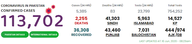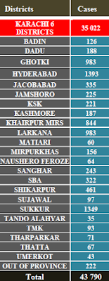 According to official statement, Karachi reported 1,755 new infections on June 10, followed by, Sukkur (344), Hyderabad (80), Ghotki (69), Larkana (40), Sanghar (37), Khairpur (29), Jamshoro (25), Dadu (25), Sujawal (23), Kashmore (22), Shikarpur (17), Mirpurkhas (13), Thatta (12), Tharparkar (11), Kambar Shadadkot (11), Umerkot (9), Jacobabad (8), Badin (4) and Tando Allahyar (1).
