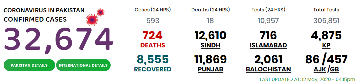 As far as the new COVID-19 cases were confirmed, Karachi failed to see any improved condition as it reported another 453 new infections, against 448 of May 12.