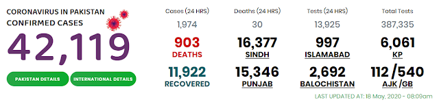 In the meantime, three more patients died of COVID-19 in Karachi, including one man aged 40 years and two women aged 55 and 48 respectively raising the tally of coronavirus related death to 234 for the megapolis and 280 for the province.