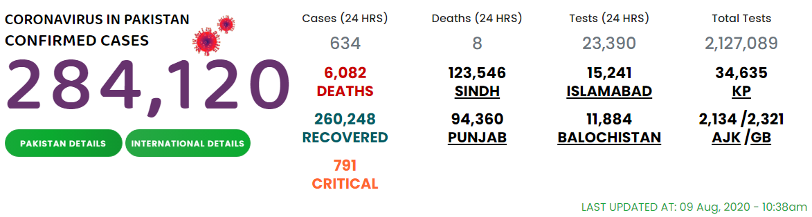 In the meantime, Karachi witnessed an increase of 22% in its daily new cases, in comparison to August 7 numbers.