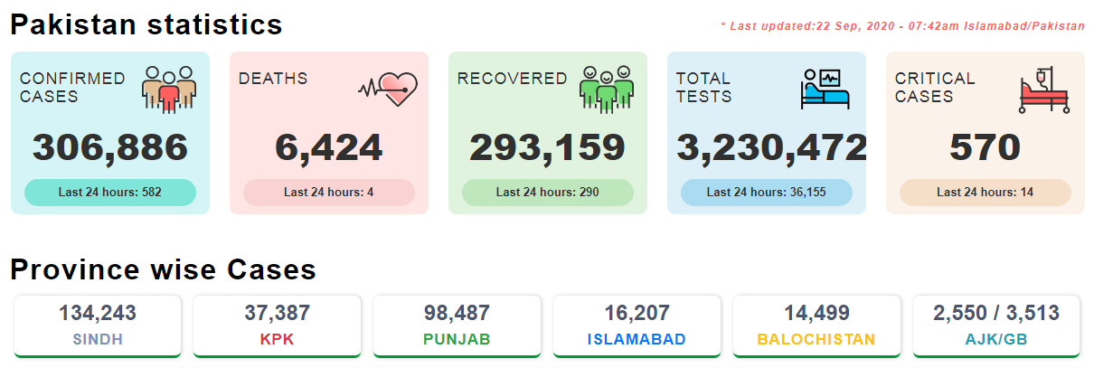 Pakistan’s fourth COVID-19 fatality of the day was reported from Punjab, which had 59 new cases on September 21.