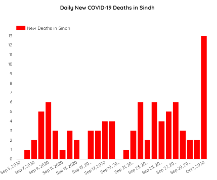 Earlier the province had registered the deaths in double digits (11) on August 24, while same was 13 on October 1 when there were reports that the civil administration had initiated actions against marriages hall, restaurants and other eateries for violating COVID-19 Standard Operating Procedures (SOPs), as prescribed by the government.