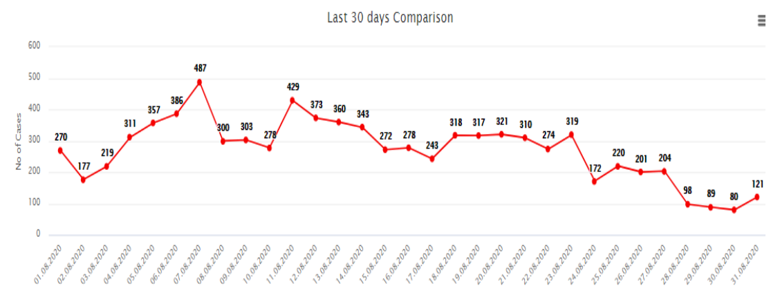 According to official data, the provincial COVID-19 daily infection rate was 1.42%, out of 5,652 tests on August 30, 1.37% out of 6,452 tests on August 29 and 1.86% out of 5,247 tests on August 28.
