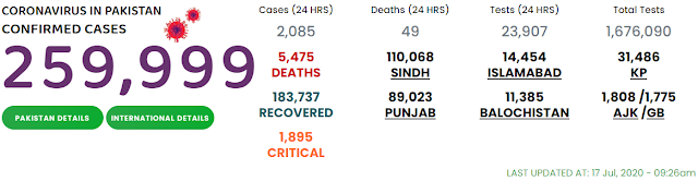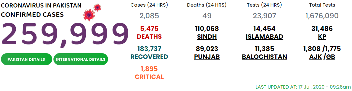 The Sindh health department also did not release any district wise details of the fatalities or the daily COVID-19 summary on July 16, but a website hosted by the department updated the number of fatalities as 1,960.