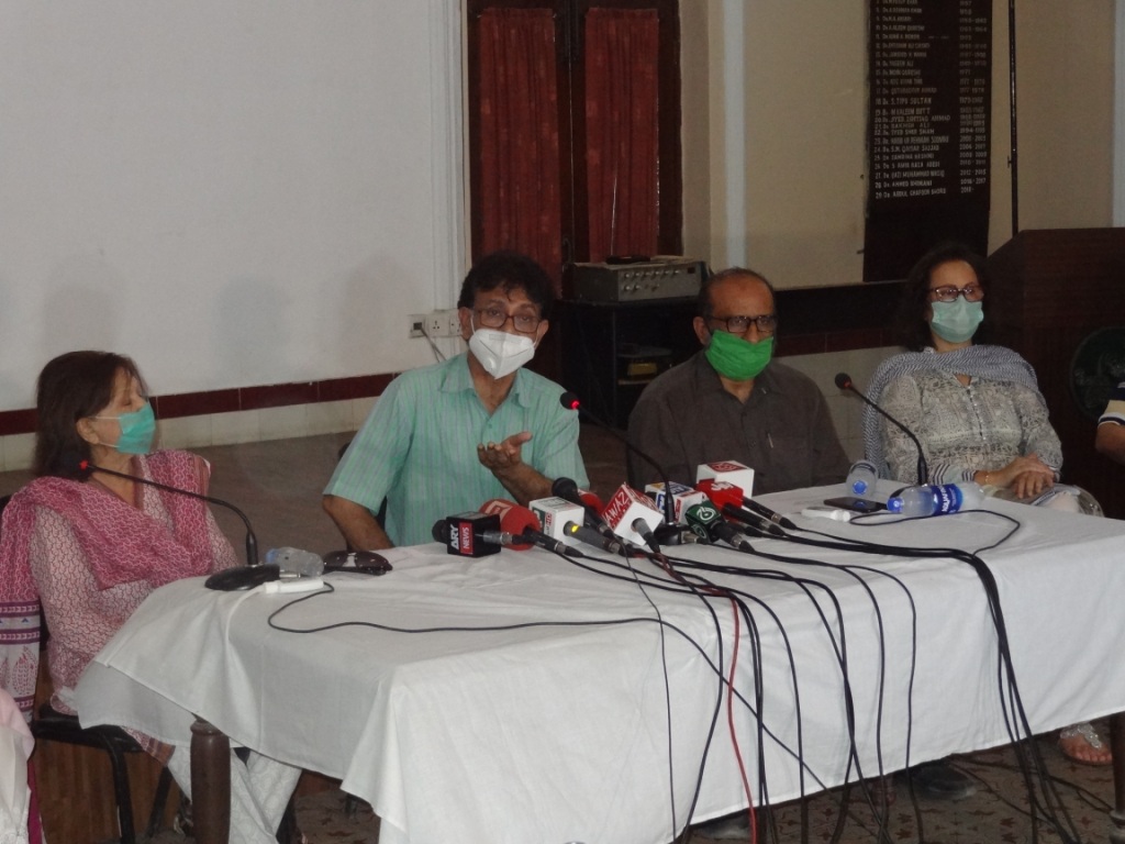 KARACHI: The leaders of medical, human rights and women welfare associations held a joint press conference on the coronavirus situation at the PMA House in Karachi on July 1.