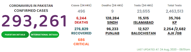 The authorities did not reveal the details related hospitalization, age, gender and area of living of the deceased persons but a report indicated that the only death that occurred on August 22 in Sindh was of a patient living in Karachi who died at home.