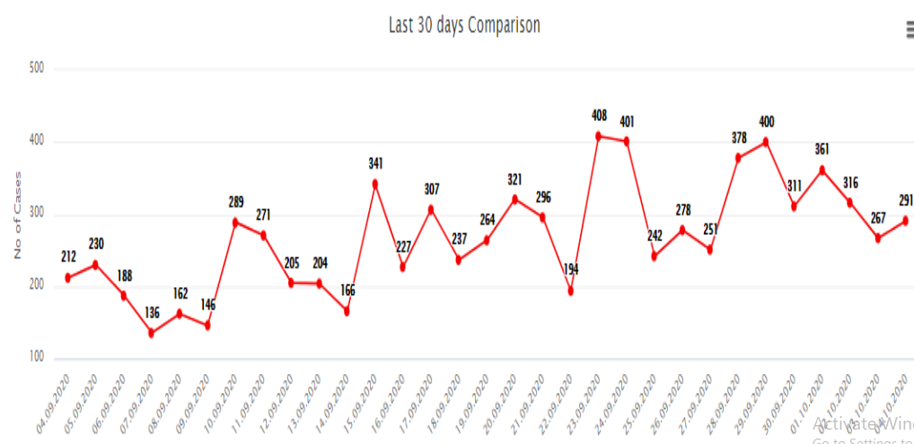 The new case reporting was 361 on October 1, which decreased to 316 on October 2 and 267 on October 3. In all 10,813 samples were tested during the 24 hours ending October 4 morning, with a positivity rate of 2.69%.
