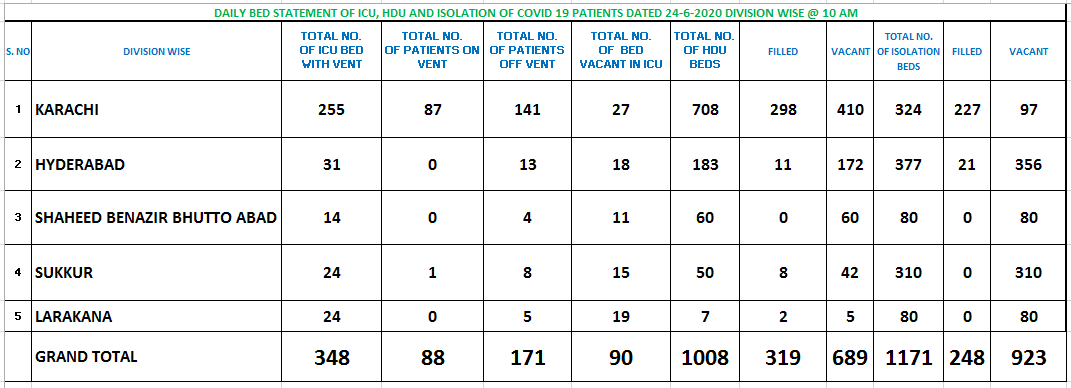 In the meantime, there were 27 beds vacant in the intensive care units of various Karachi hospitals including Dow University Hospital, JPMC, Lyari General Hospital, NICH, Dr Ziauddin hospital, Clifton, and Sessi Kidney Centre and Landhi.