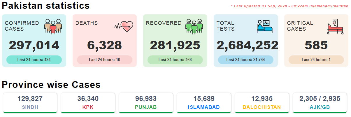 With the registration of more cases on September 2, Sindh’s daily infection rate rose to 3.35%, while the overall tally of infection reached to 129,827, ie 12.75% of the 1,018,013 samples tested since February 26 when the disease erupted in Sindh.