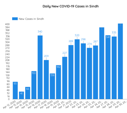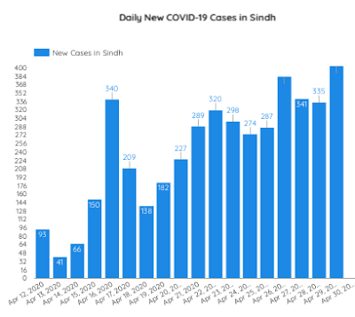 The official infection report showed that the daily new infection rate of 88.77% for Karachi as on April 26 decreased to 83.41% on April 29, with 337 new cases, out of 404 tested across Sindh.