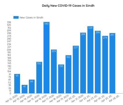Sindh’s overall COVID-19 infection rate came as 11.08% against the country’s overall 9.15% on April 25 when it reported another 287 new cases of the virus infection, with three more deaths of patients.
