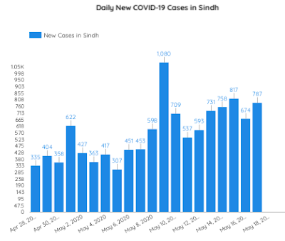 A study of the COVID-19 data pertaining to Sindh revealed that the province had been showing new cases gradually on decrease after May 8. On average the province has reported 701 cases per day since May 9.