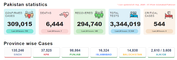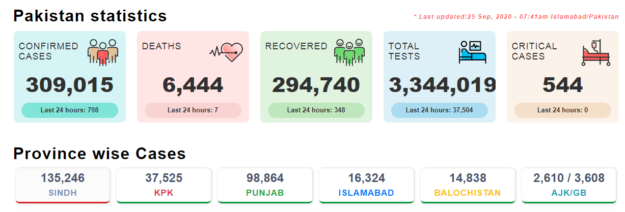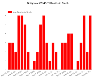 According to the data, Sindh had the rate of new infections as 1.4% on September 22, which increased to 2.5% on September 24 morning, taking the overall infection tally to 135,246 for the province, 129,101 of which were reported to have recovered from the diseases, while 2,477 lost their lives.