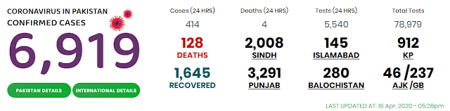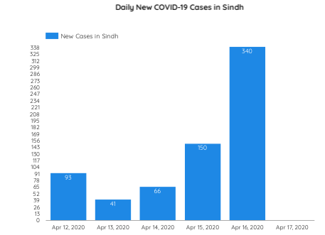 There were a total 2,008 coronavirus positives cases in Sindh, including 340 cases reported on April 16, against 4,911 cases reported by the rest of Pakistan. The 63.5% of the total new infections (536) in the country were reported from Sindh, according to the federal government data.